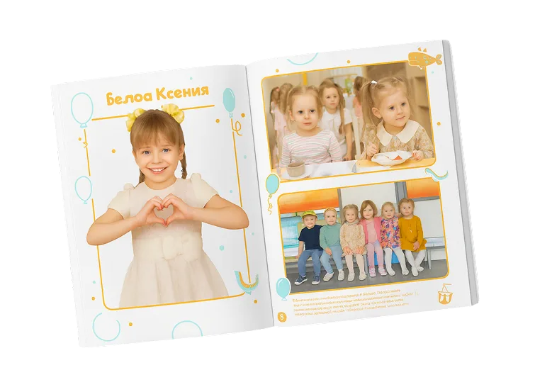 Мы предлагаем 13 оригинальных макетов, включая «Рисунки», «Пиксель», «Африка», «Игрушки» и другие. Все альбомы включают портрет ребенка, фотографии всей группы, виньетки, снимки воспитателей и репортажные кадры.